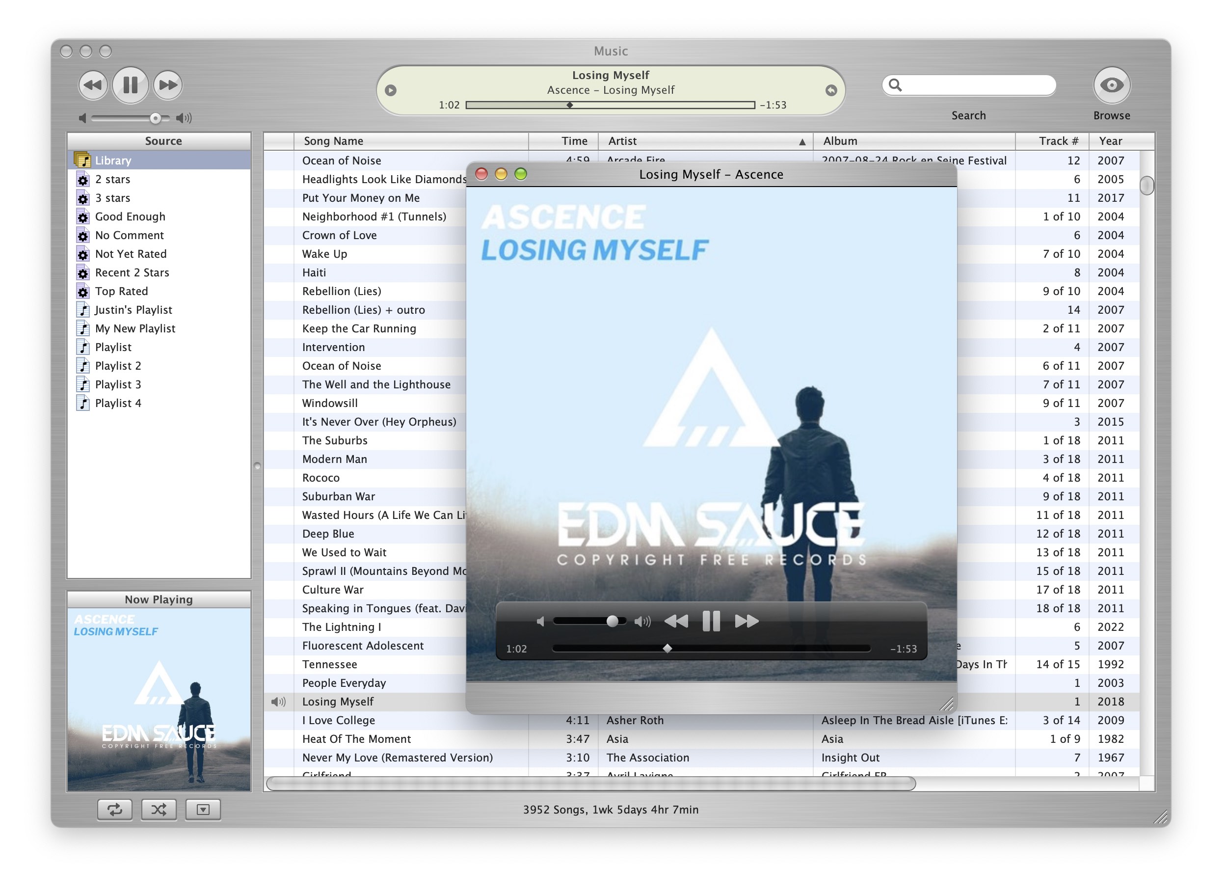Album artwork window with player controls that fade away when the mouse leaves the window.